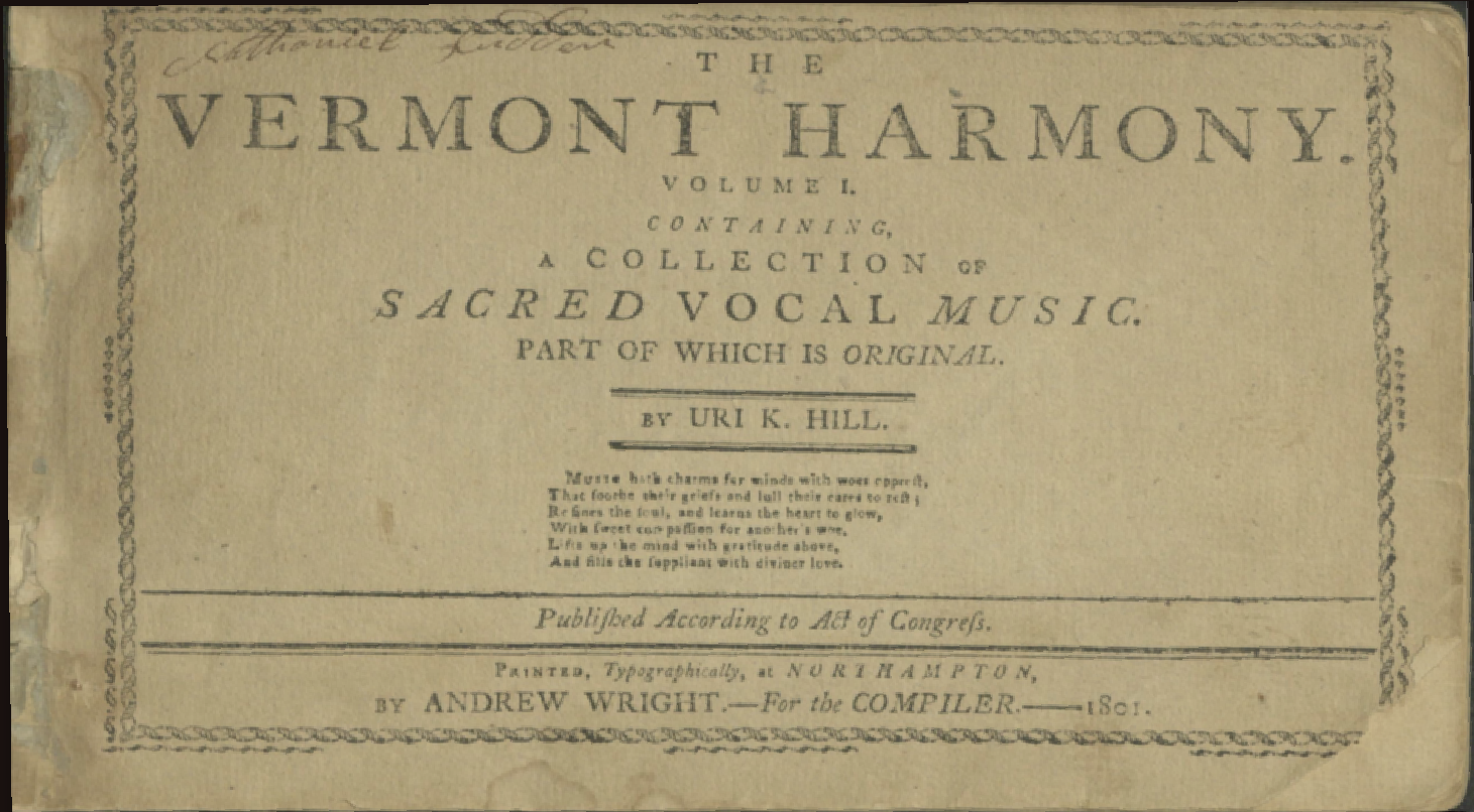 Vermont Harmony, Uri K. Hill, 1801. Rutland, VT