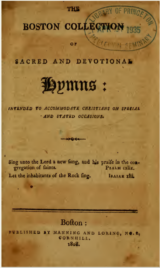 THE BOSTON COLLECTION OF SACRED AND DEVOTIONAL HYMNS, 1808