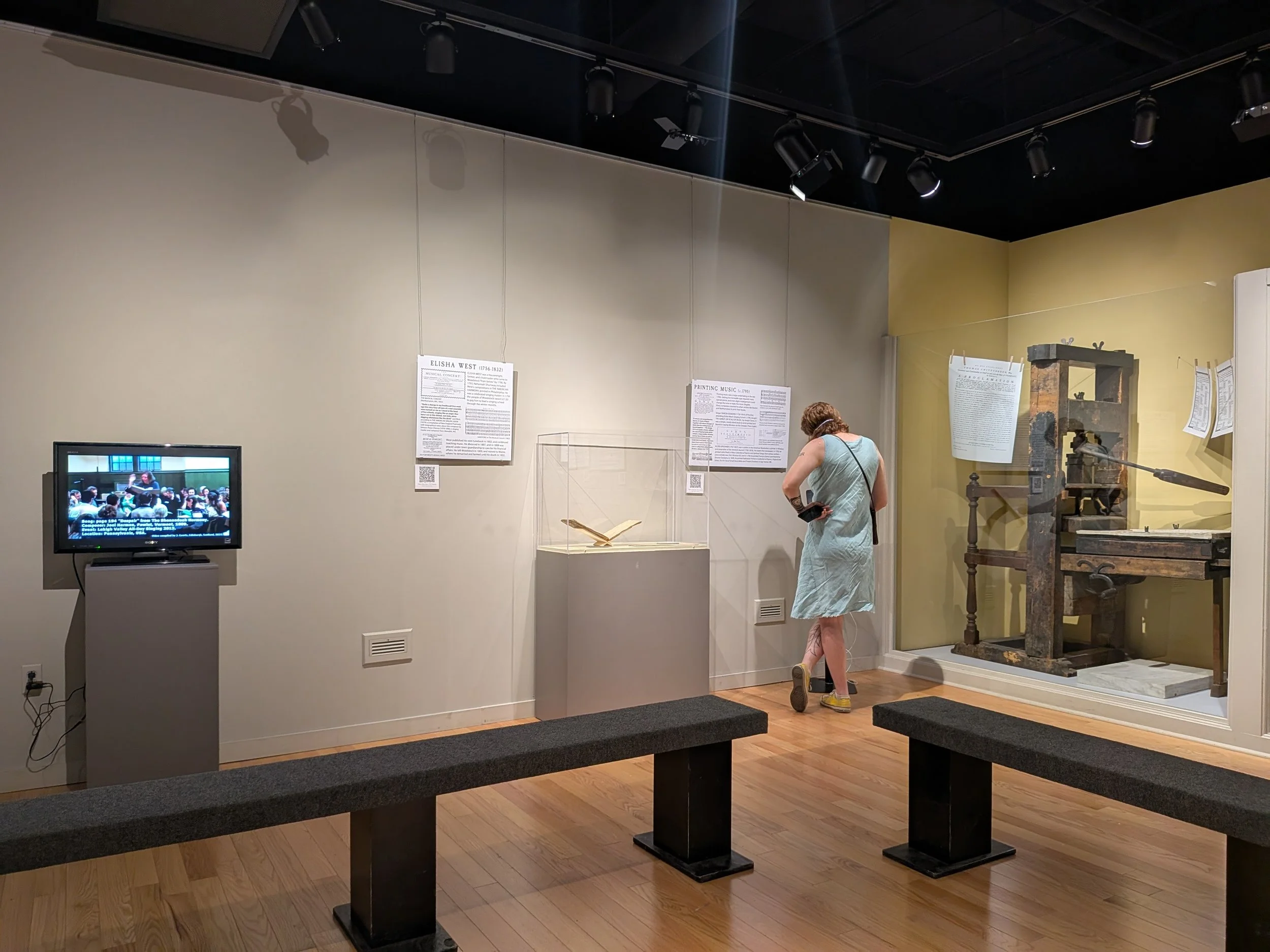 ¨A 45-minute visit to Vermont's Tunebook Tradition, put together by my friend the indefatigable connector of people, projects, and history Kerry Cullinan, left me highly impressed. It's attractive, it's accurate, it draws you in, and it points out some telling interrelationships between tunebooks and the people who compiled and used them. This is the deepest dive I've yet seen into bringing together documents and recordings related to a specific region's activities in early American psalmody, and it's informative on the level of both printed tunebooks and manuscripts. Vermont's Tunebook Tradition rightly pays homage to Betty Bandel (1912-2008), who did more than anyone else in the 20th century to open up the sacred music and musicians of the Green Mountain State for study and enjoyment through Vermont Harmony, a series of recordings with extensive notes that Betty produced in collaboration with James Chapman. Another praiseworthy aspect of the exhibit is the inclusion of recordings--both audio and video--of shape-note singers bringing some of the best early Vermont music to life. The exhibit's up through December; don't miss it!¨