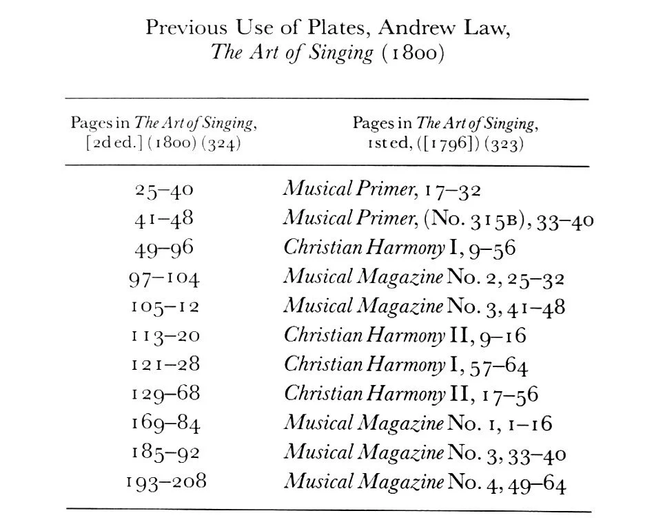 The genesis of Law's The Art of Singing is described in Crawford 1968, p. 111-20, and a bibliography appears on p. 269-82. Law's own description of the projected Art of Singing appears in Part II, The Christian Harmony, Vol. 1 (1794), q.v. (No. 316).