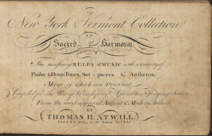 New York and Vermont Collection of Sacred Harmony 1804 - Thomas Atwill,  Castleton